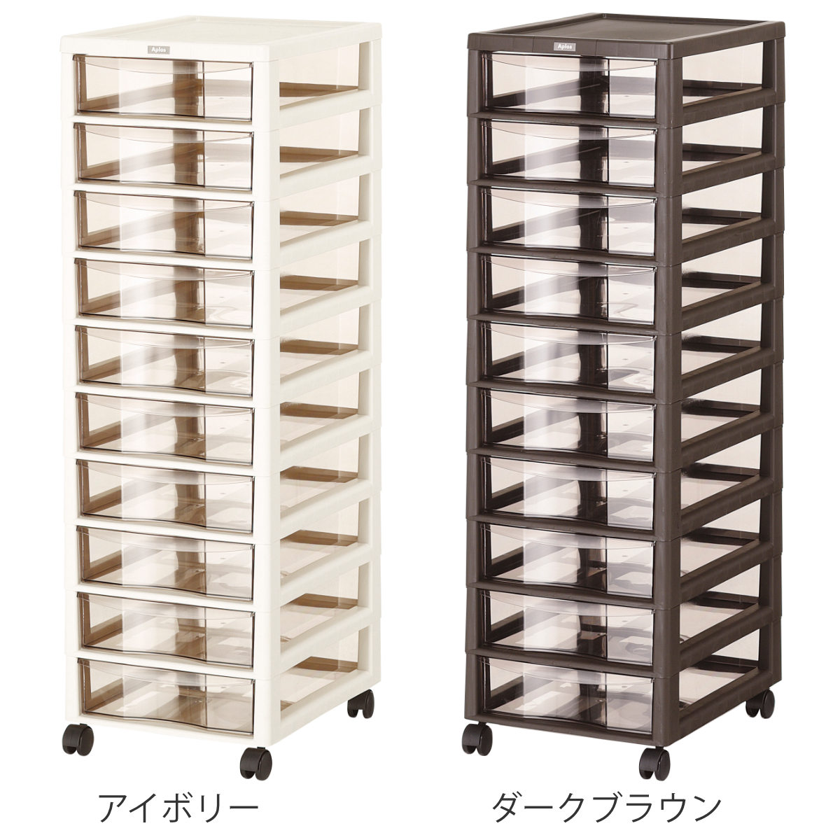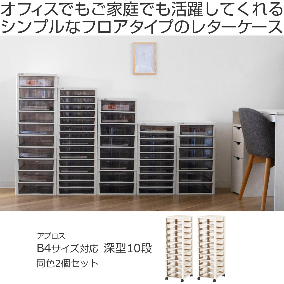 書類ケース フロアケース アプロス B4 深型 10段 幅32.3×奥行40.6×高さ103.1cm 同色2個セット ( レターケース 引き出し 書類 収納ケース 収納 デスク収納 サイドチェスト 透明 ケース 引出し プリント 書類収納 ) 【ダークブラウン】