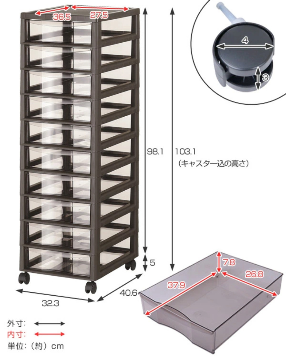 | 材質 | 本体:ポリプロピレン 引出し:ポリスチレン |