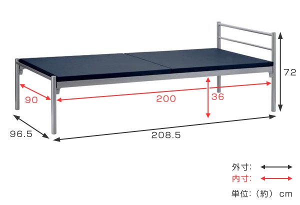 | サイズ | 約 幅96.5×奥行208.5×高さ72(cm) マット:約幅95×奥行200(cm) 床下:約幅90×奥行200×高さ36(cm) |