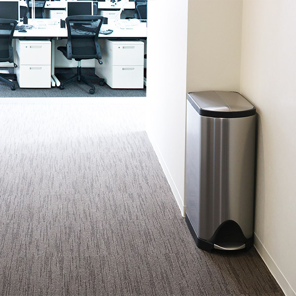 フタは中央から左右に分かれて開くバタフライ式。フタを開けたときの高さが低く抑えられるので、カウンター下や棚下など高さに制限のある場所に最適です。左右を壁や棚などにぴったり付けて設置しても、フタが当たることなくスムーズに開閉するので、幅の狭いスペースにも設置可能です。洗練されたデザインでどこに置いても美しいダストボックスです。