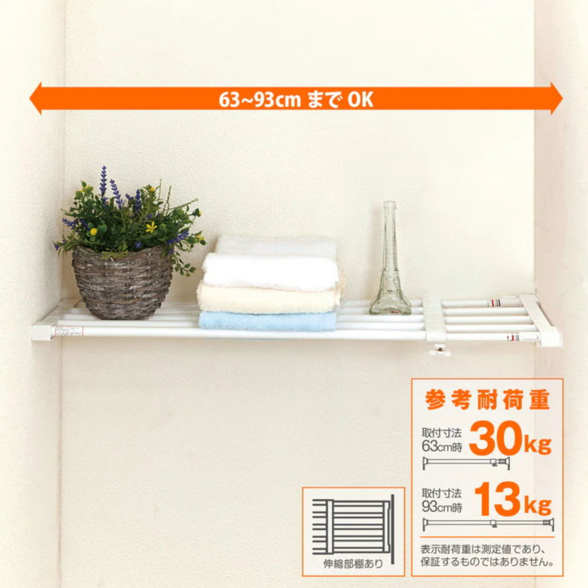 つっぱり棚 突ぱり強力伸縮棚 小 取付幅:63~93cm 2個セット ( 突っ張り棚 強力 つっぱり 伸縮 突ぱり 突っ張り式収納 棚 収納 突っぱり棚 2個 )