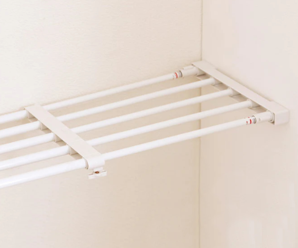 つっぱり式の棚は、トイレや洗面所、お部屋のちょっとしたデッドスペースに取り付けるだけで、簡単に収納スペースを作り出すことができます。