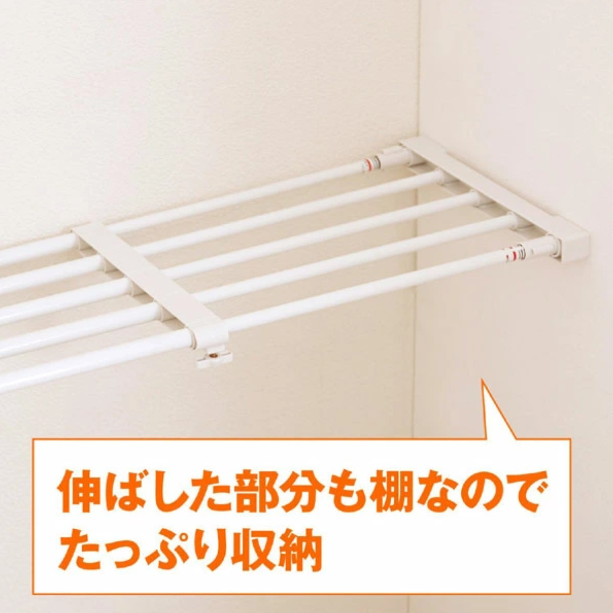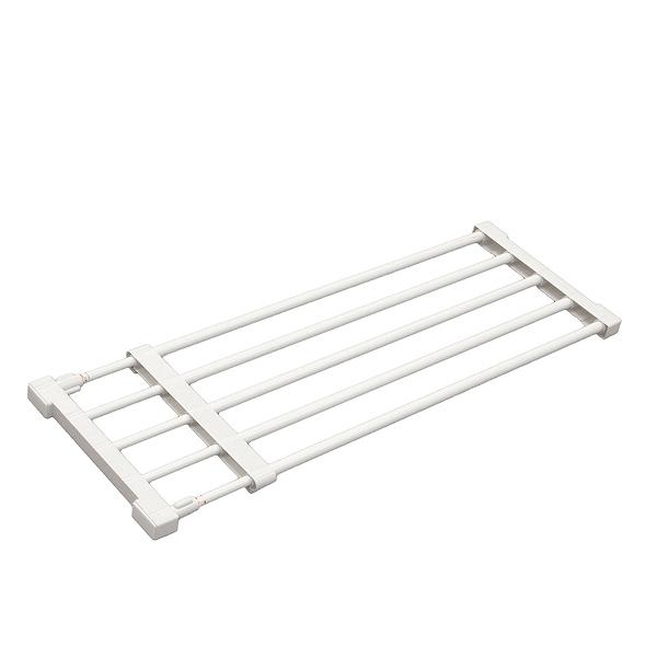 伸縮可能でスペースに無駄が生まれません。伸ばした部分も、端から端までたっぷり棚として使えます。