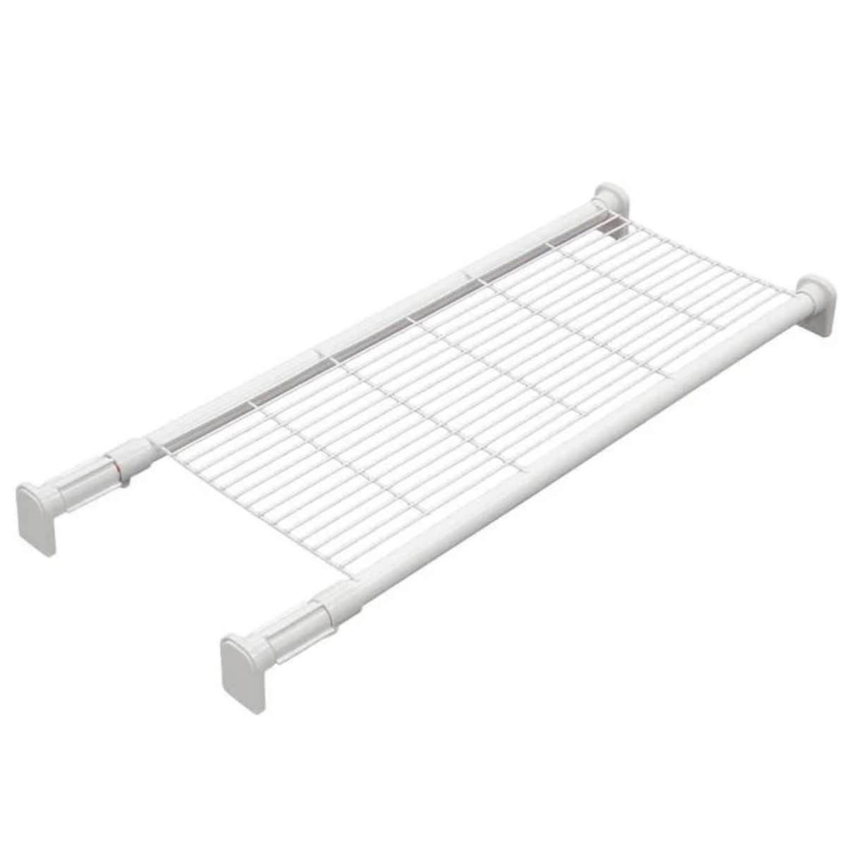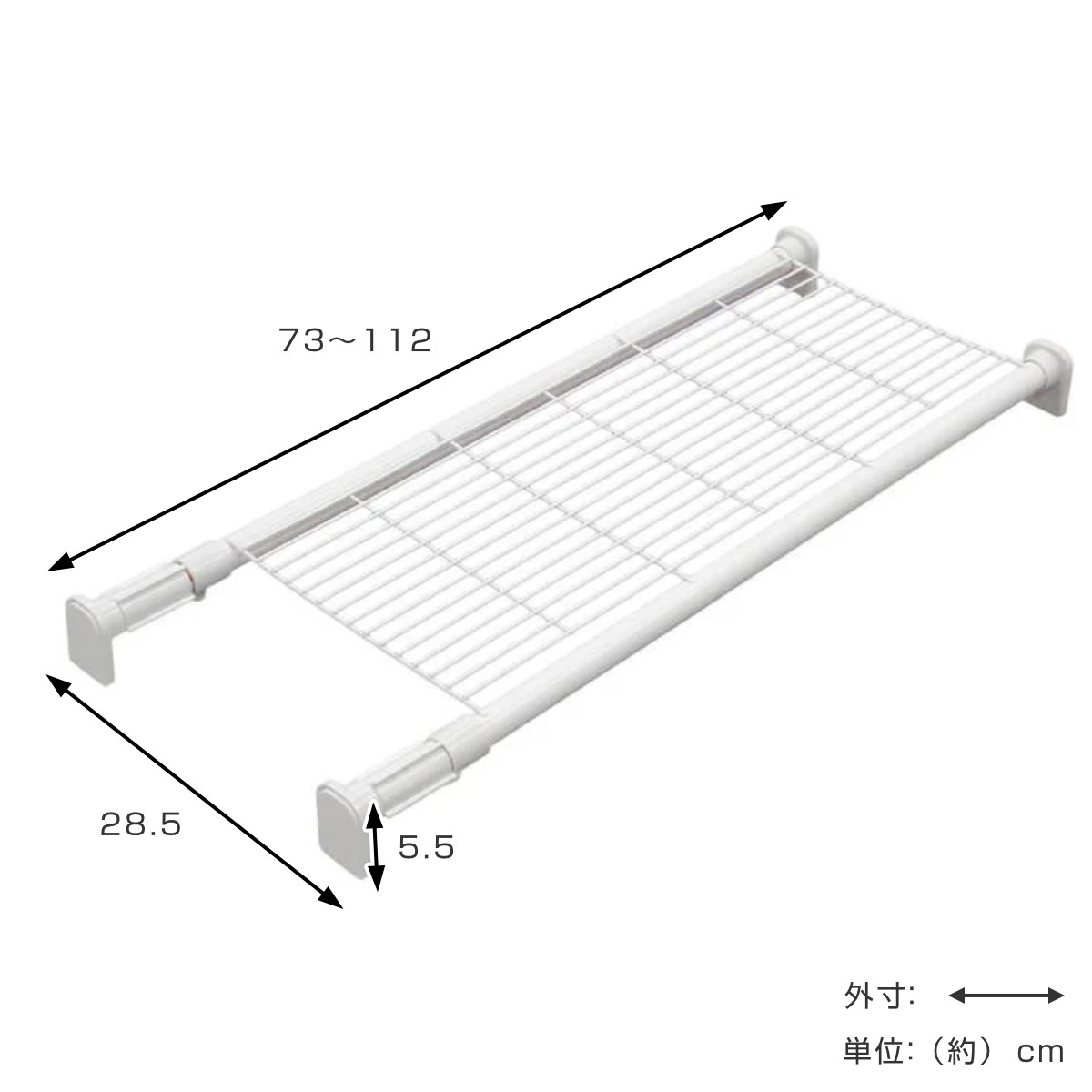 つっぱり棚 ニューストロング突ぱり棚 小 幅73~112cm 2個セット ( 突っ張り棚 奥行28.5cm 強力 つっぱり 収納 メッシュ 突っ張り 伸縮 小物置き ホワイト 突っぱり 突っぱり棚 突ぱり 突っ張り式収納 ラック 棚 スリム )