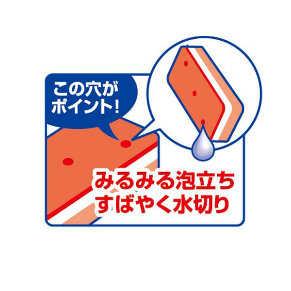 穴あき構造でみるみる泡立ち、素早く水切り出来るスポンジ
