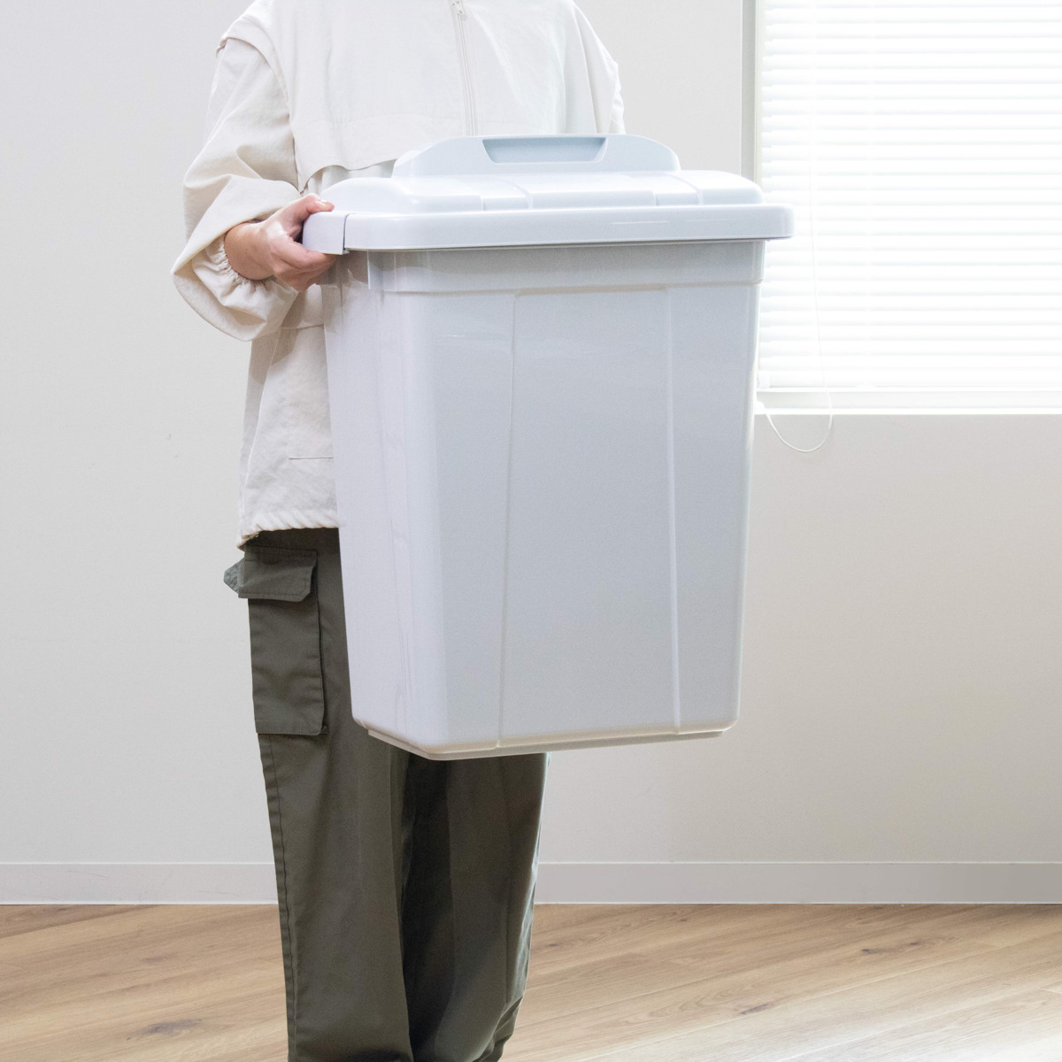 本体は水に強く、軽量で扱いやすいポリプロピレン製なので、屋内外問わずお使いいただけます。ゴミ収集日まで間があっても溜まったゴミをストックできます。投入口が広いのでお菓子のパッケージや2Lのペットボトル、梱包材などの大きいゴミも捨てられます。