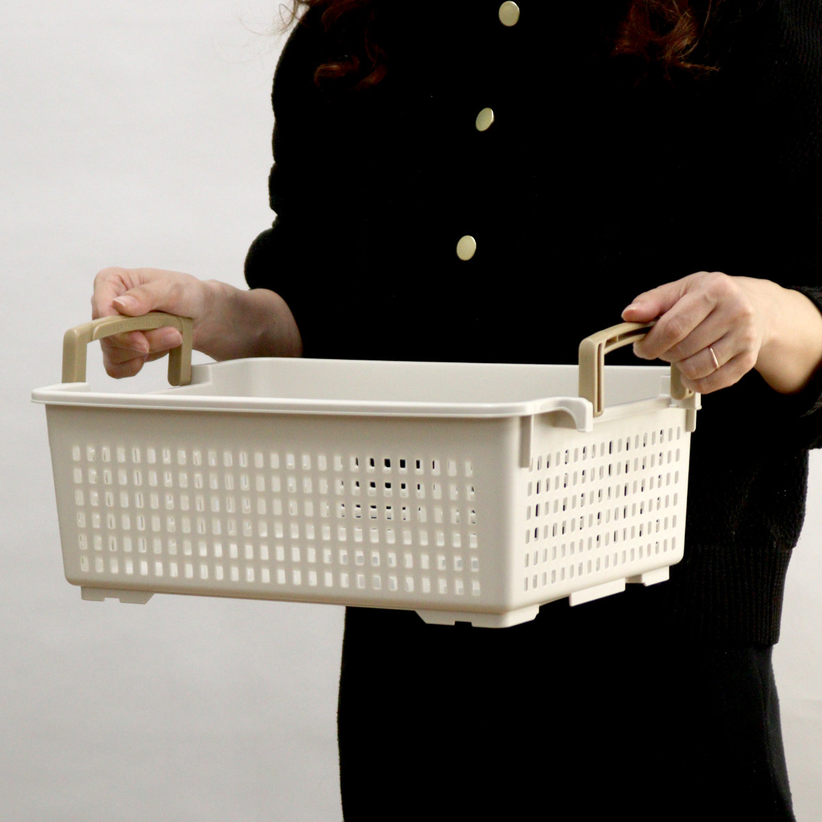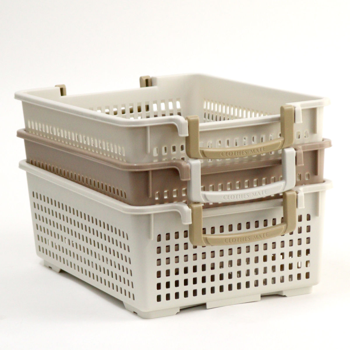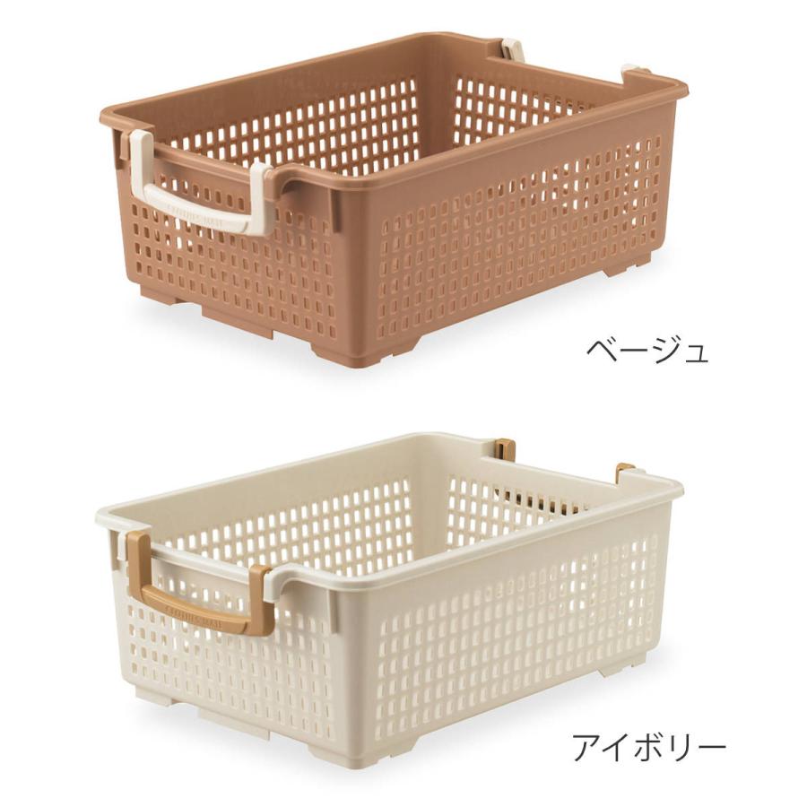 収納バスケット 衣類収納ケース フリーバスケット Mサイズ 取っ手付き 同色3個セット ( 幅28.5×奥行41.5×高さ14cm かご カゴ 収納 プラスチック おもちゃ箱 衣装ケース 積み重ね 小物入れ 収納箱 Yシャツ 収納ボックス ) 【アイボリー】