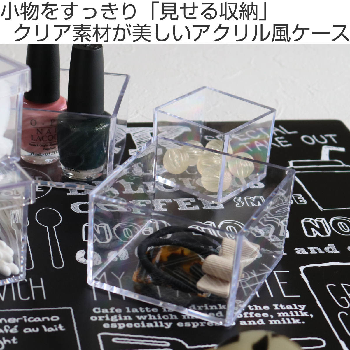 クリアケース 小物ケース 透明 収納 デスコシリーズ 約 幅8.4×奥行8.4×高さ5.4cm ( 小物収納 小物入れ 収納ケース ふた無し 小箱 プラスチック クリア 小物 アクセサリー コレクション ケース 卓上収納 仕分け 整理整頓 日本製 )のレビュー