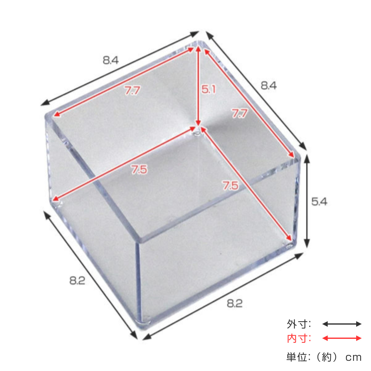 内寸:約 幅7.5×奥行7.5×高さ5.1(cm)