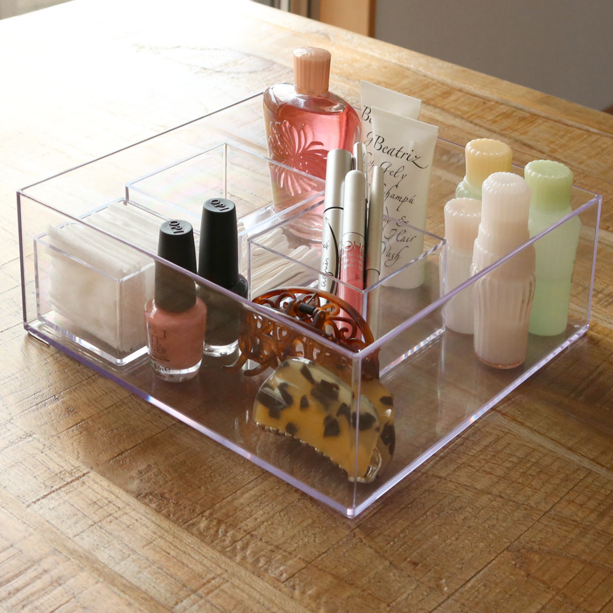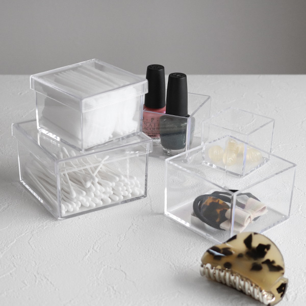 アクセサリー、コスメ用品、文房具など細々したものをまとめるのに最適なクリアケースです。透明でシンプルなケースは、中が見えるので収納物を把握しやすいところも嬉しいポイントです。