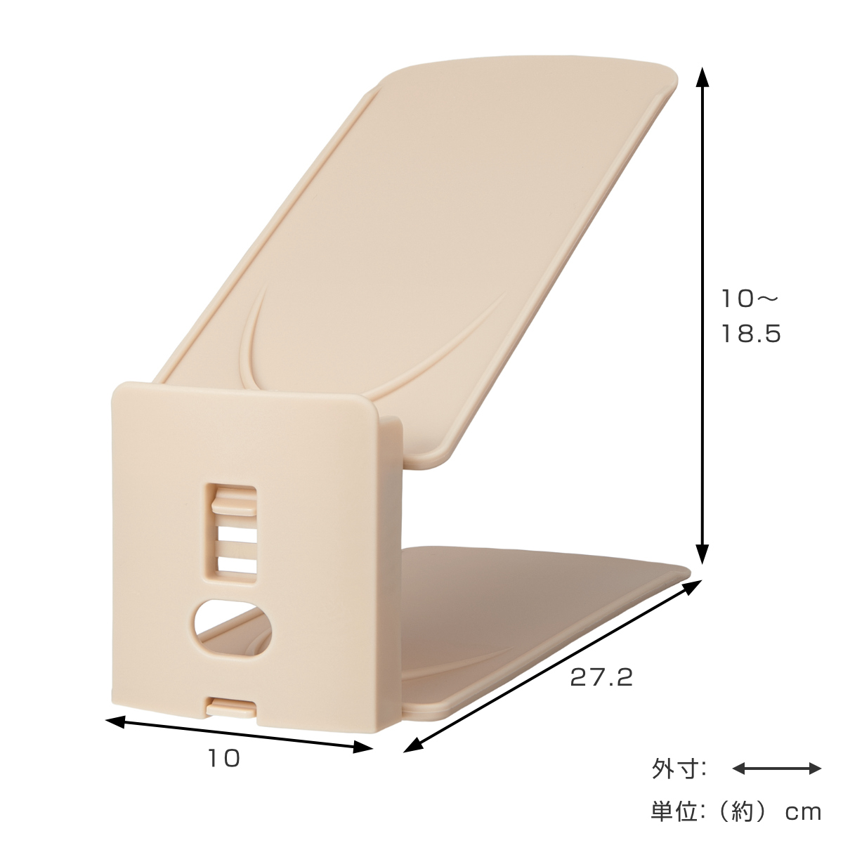 | サイズ | 約 幅10×奥行27.2×高さ18.5(cm) 高さ調節可能:10~18.5(cm) |