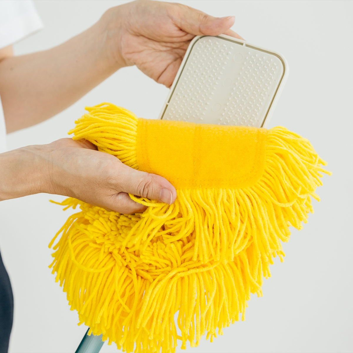 | 材質 | グリップ:ポリエチレン・ポリプロピレン ハンドル:スチール(ポリプロピレン被覆) プレート:ポリプロピレン モップ糸:アクリル |