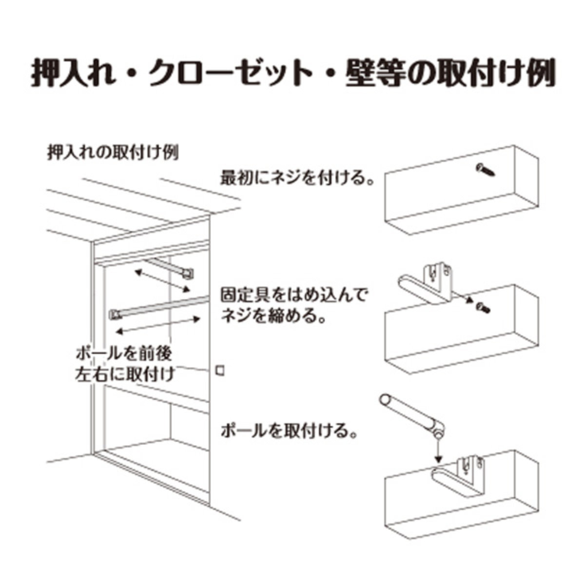 ラックやタンスなどの上に橋渡しして設置するという使い方もおすすめ。付属の回転防止具を使ってポールの回転を固定できます。