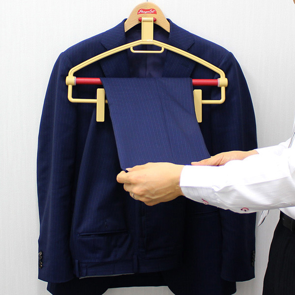 ・帰宅して着替えるとき、(1)ストップバーを上げ上着を掛けます。(2)ボトムを掛け、次の日に着るシャツやネクタイも掛けられます。