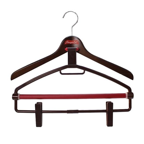 木製ハンガー ハンガーキャット WOODシリーズ 25マルチ クリア ( 制服 スラックスハンガー スカートハンガー クリップハンガー ジャケット用 ズボン用 ボトム パンツ 衣類ハンガー 洋服ハンガー ) 【ブラウン】