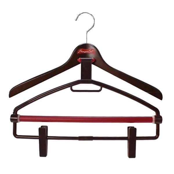 木製ハンガー ハンガーキャット WOODシリーズ 20マルチ クリア ( 制服 スラックスハンガー スカートハンガー クリップハンガー ジャケット用 ズボン用 ボトム パンツ 衣類ハンガー 洋服ハンガー ) 【ブラウン】