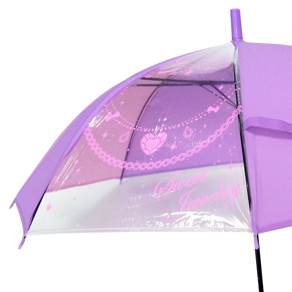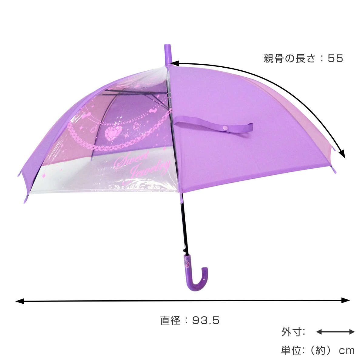 長傘 ジュニア用 ジャンプ傘 55cm POE ジュエリー ( 傘 かさ 子ども 小学生 キッズ ジュニア 幼児 雨傘 雨具 女の子 かわいい レイングッズ 通園 通学 保育園 幼稚園 パステル リボン 透明窓 )