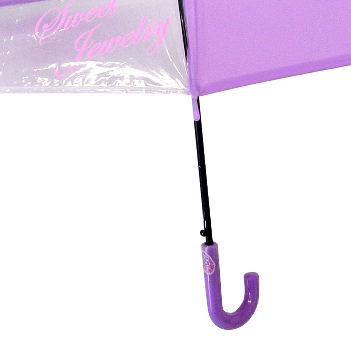 鮮やかなパープルにキラキラ輝くジュエリーデザインが目を引く、華やかな長傘。親骨55cmのサイズで、身長120~140cmのお子様にぴったりです。