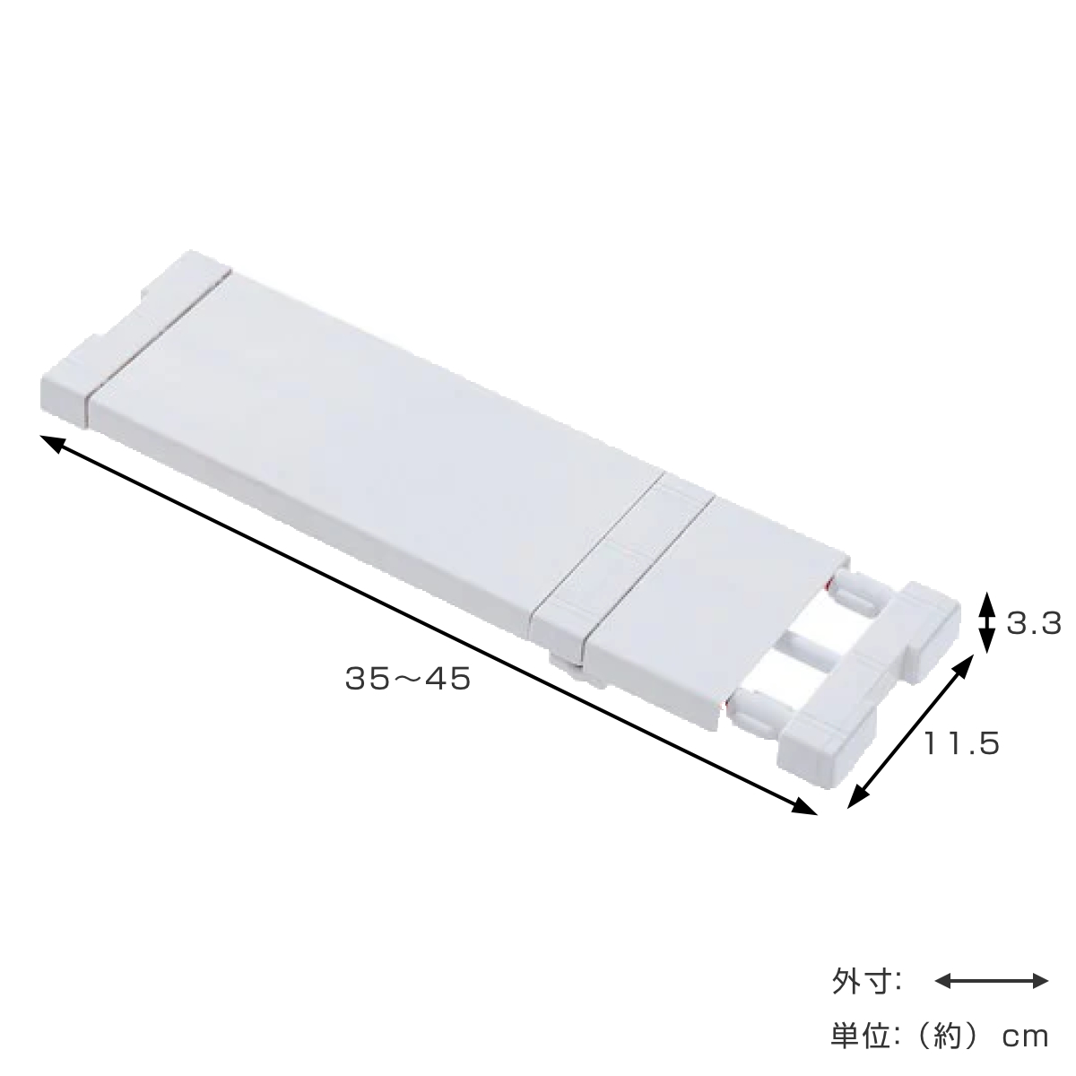 | サイズ | 約 幅35~45×奥行11.5×高さ3.3(cm) パイプ径:約 直径1(cm) 、1.3(cm) |