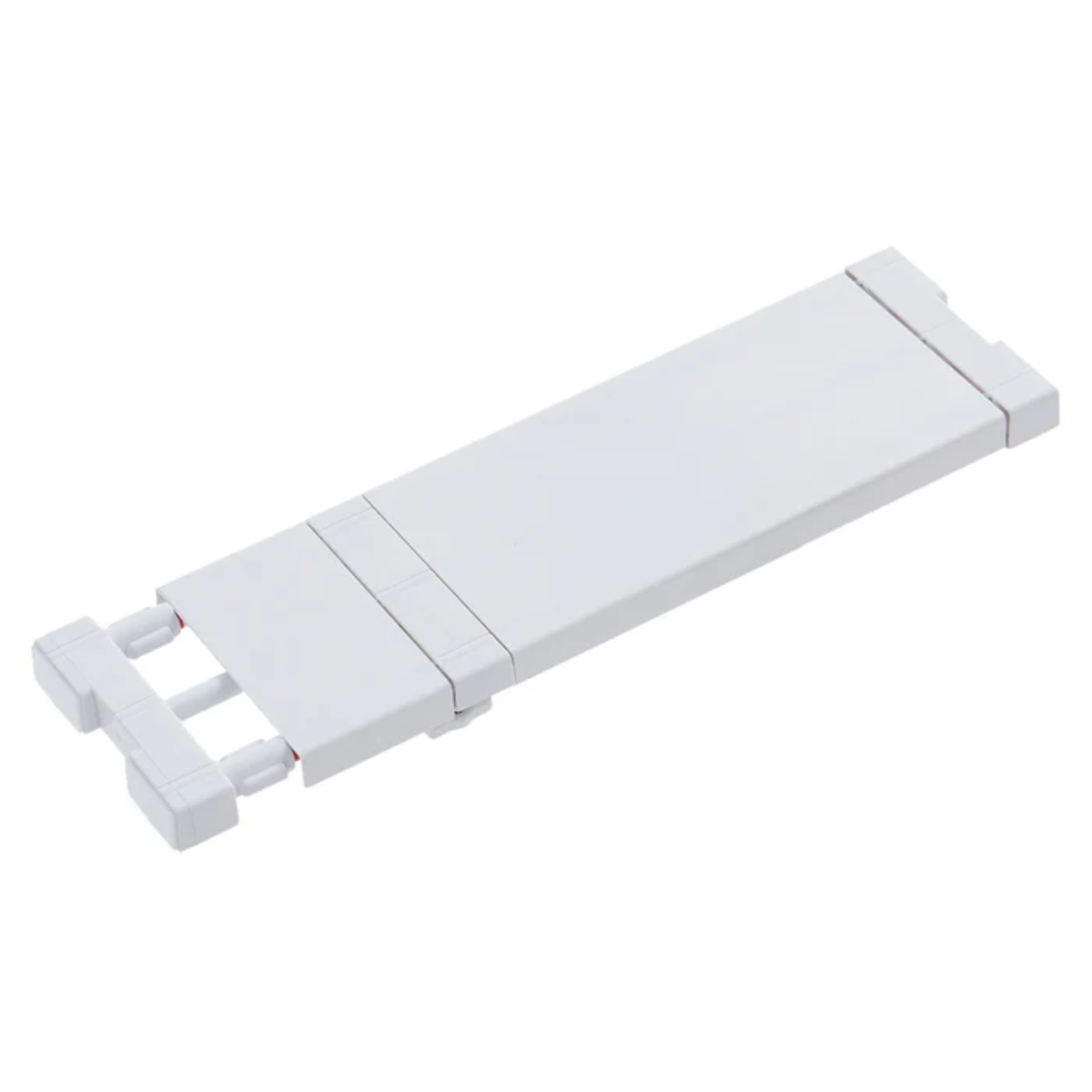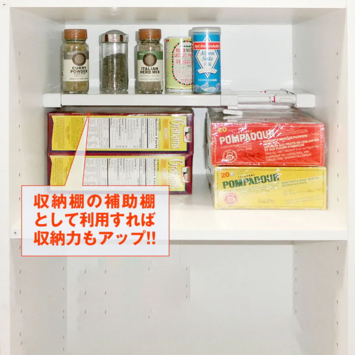 棚カバーを使用すれば、パイプ状態ではすり抜けてしまう小物でも置くことができます。棚カバーは4.5cm幅で溝が入っているので、カッターで簡単にカットができます。伸縮部分にも棚カバーがついていて幅いっぱいまで棚として使えるのもうれしいポイントです。