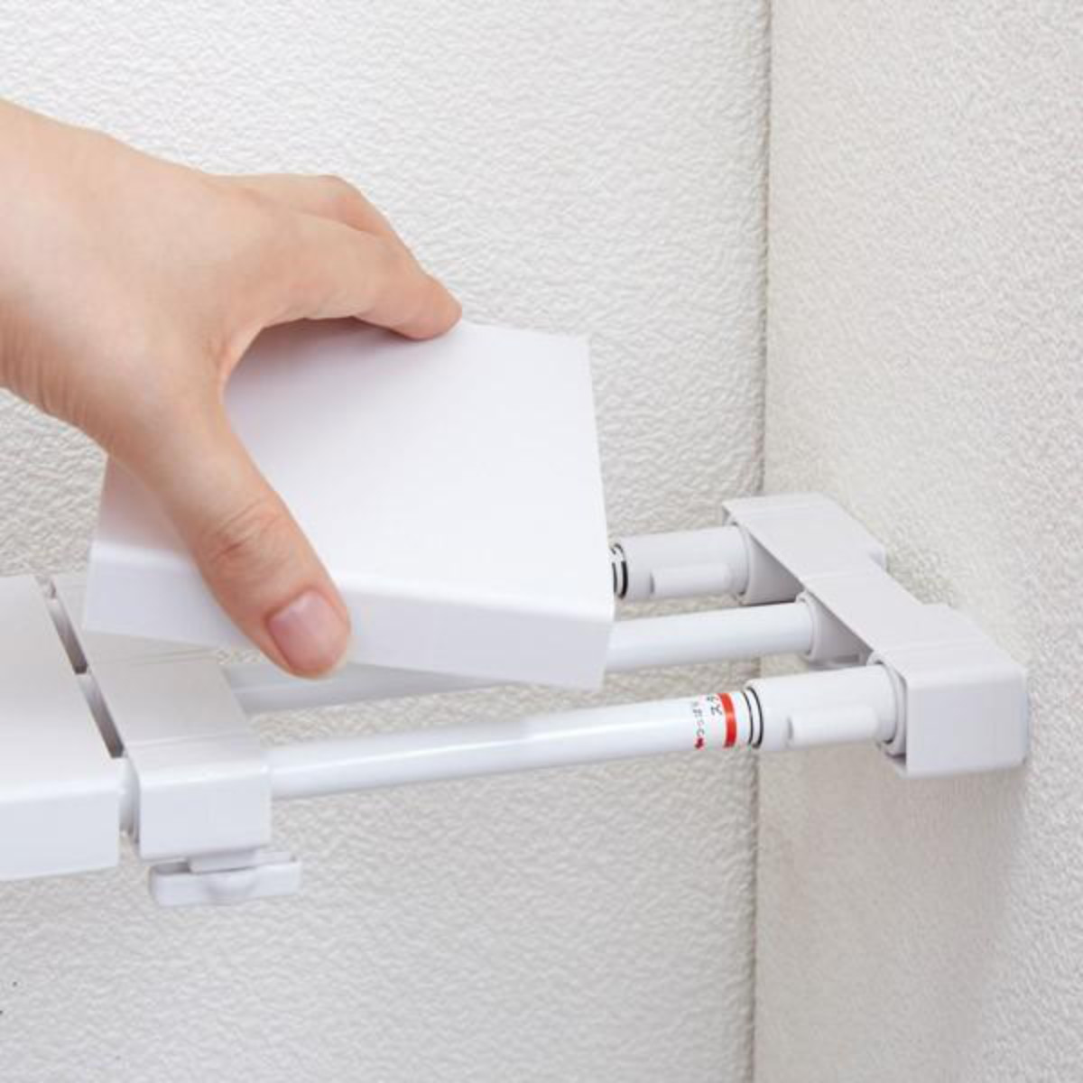 ネジ・クギを使わずに設置することができるつっぱり式の伸縮棚です。トイレや洗面所のデッドスペースに設置して小物を置いたり、シンク下などに補助棚として設置してスペースを有効活用できます。縦向きに設置して傘かけとしても使用できます。