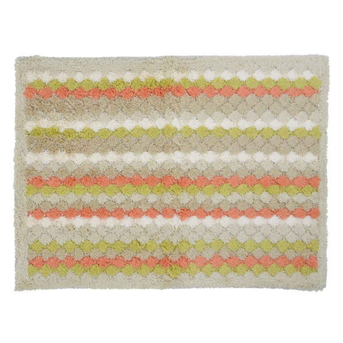毛足の先がカットされたものと、ループ状になっている毛足の2種類からできており、毛足の長短によりポコポコとしたテクスチャをつくりました。このデコボコが足裏に気持よくお風呂上がりをより快適にしてくれます。