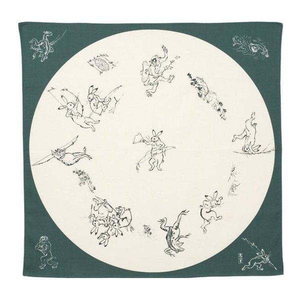 風呂敷 エコバッグ 68cm 中判 二巾 鳥獣人物戯画 ふろしき 綿100% ( 風呂敷き フロシキ 中判風呂敷 祝い事 綿 お弁当包み ランチクロス 中風呂敷 弁当 お弁当 弁当包み 包み 約 70cm ) 【 モスグリーン 】