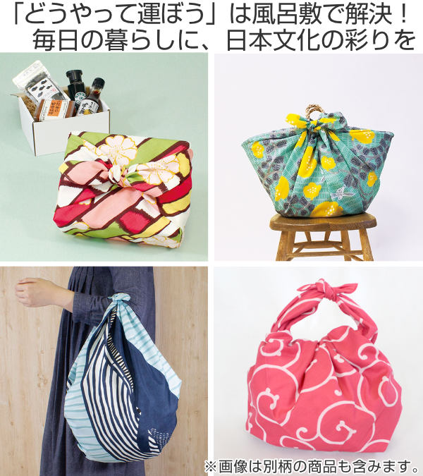 1枚の布で様々なものが包める風呂敷は、伝統的なアイテムでありながら毎日の暮らしに役立つアイテムです。風呂敷1枚あれば、市販のエコバッグでは運べないものも運べ、容量、形に柔軟に合わせられるので、あらゆるお買い物にも対応出来るエコバッグになります。風呂敷はとても柔軟に私たちのくらしに彩りを添えてくれるアイテムです。