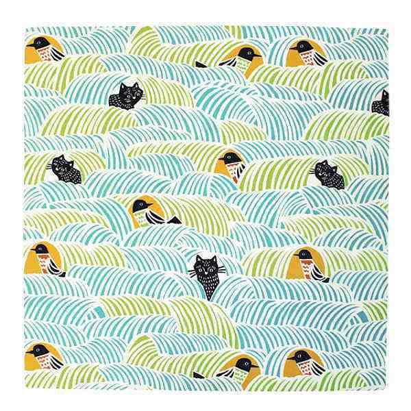 風呂敷 エコバッグ 70cm 中判 二巾 こはれ ねこととり ふろしき 綿100% ( お弁当包み 綿 ランチクロス 70 猫 ネコ ねこ グッズ 風呂敷バッグ ミニバッグ ふろしきバッグ お弁当 弁当包み 包み ) 【 グリーン 】