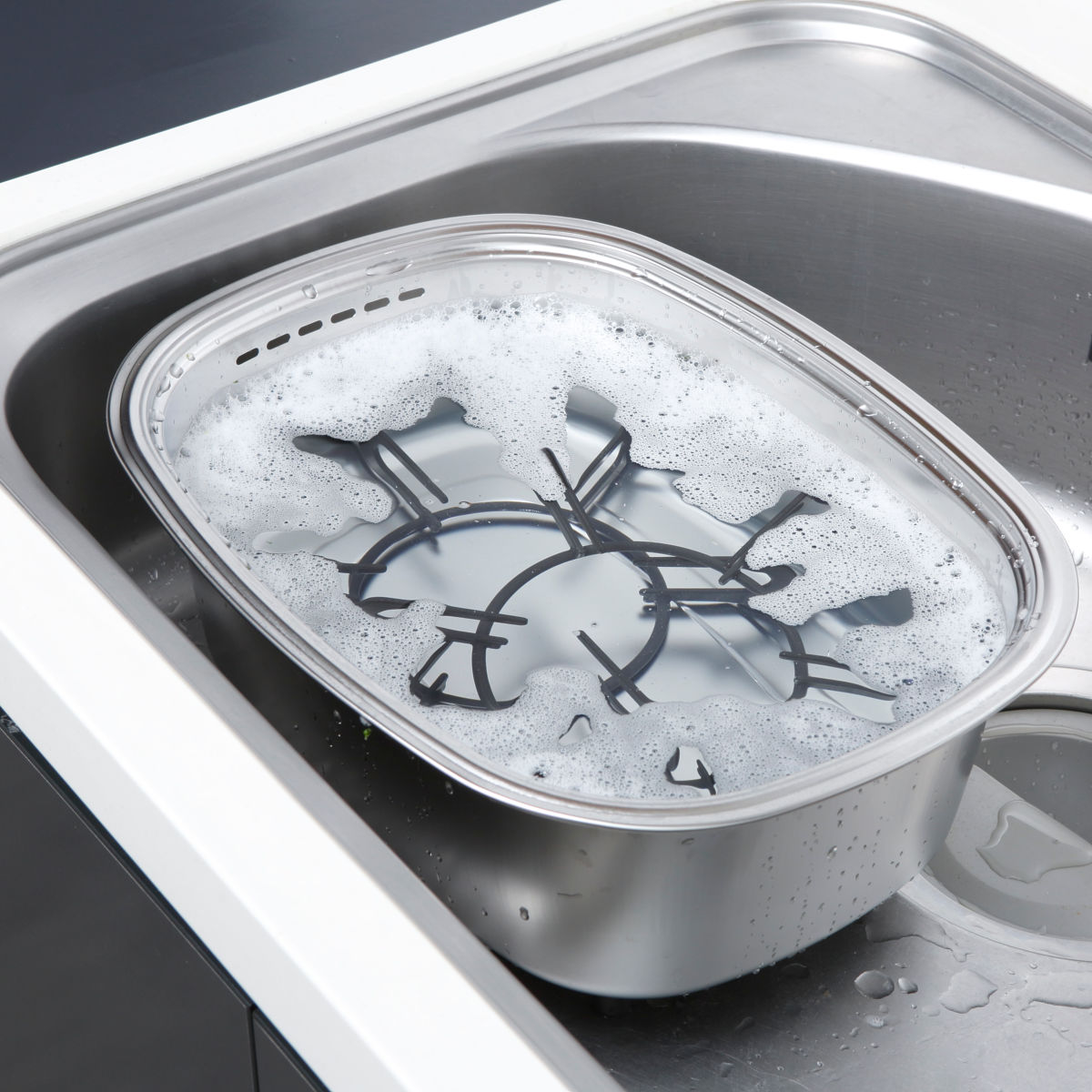 オーバーフローのスリットから自然に水が抜けるので、箸や野菜などが水と一緒に流れ出るのを防ぎます。また、逆さにしても空気が通るので、通気性良く乾かすことができます。