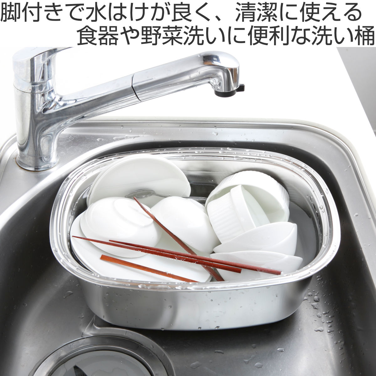 洗い桶 ステンレス製 ゴム脚付き ( ステンレス 日本製 洗いおけ たらい 野菜洗い 食器洗い 桶 つけ置き 脚付き つけ置き洗い すすぎ シンク周り キッチン用品 キッチン雑貨 水まわり 皿洗い 6.7L )
