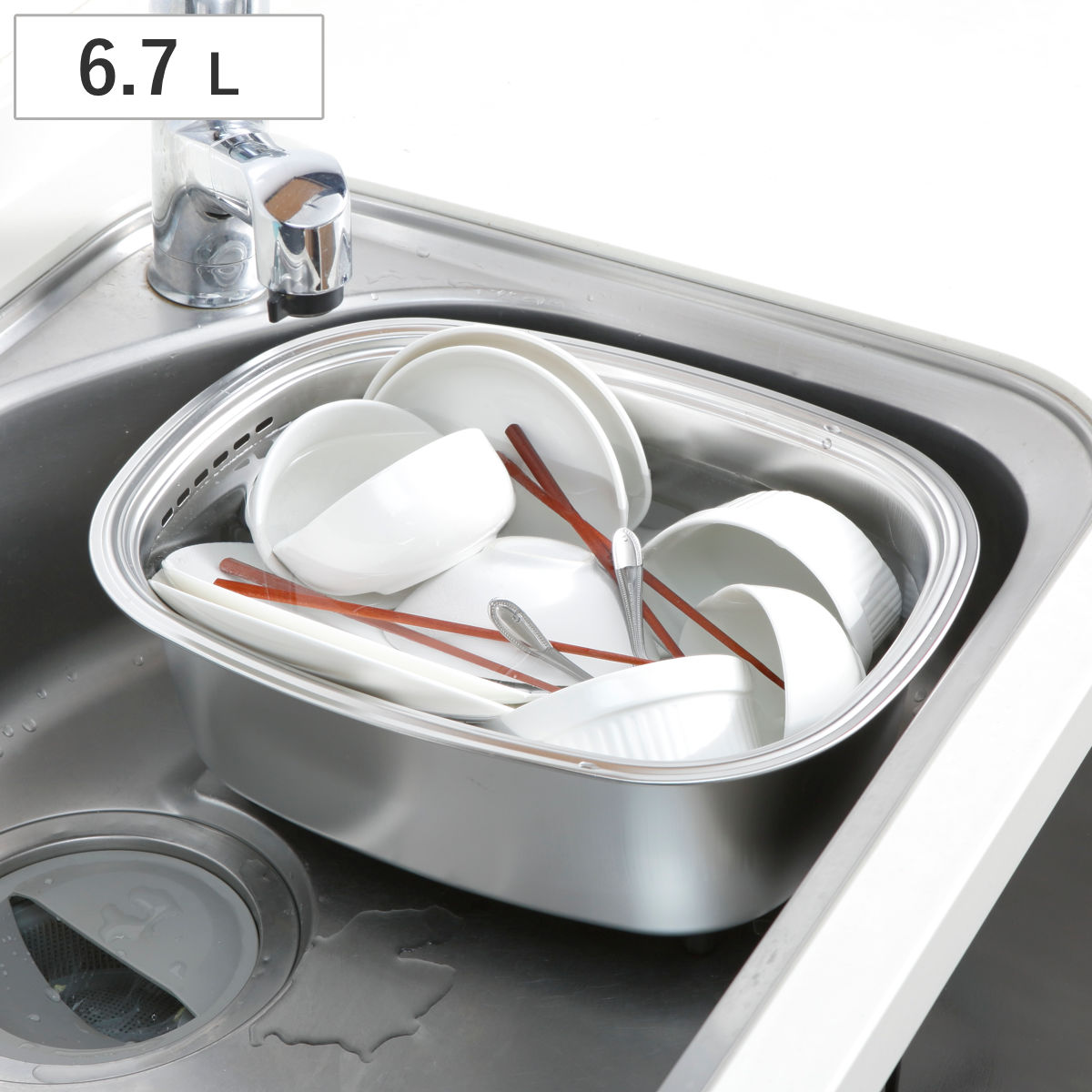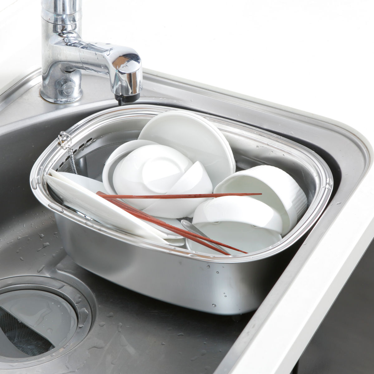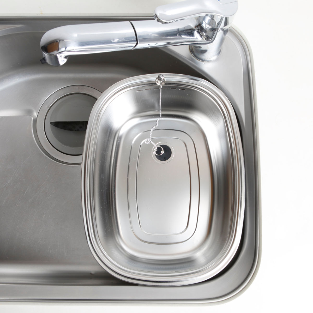 耐久性抜群のステンレス製洗い桶です。サビに強く丈夫なので、毎日の食器洗いにも安心してお使いいただけます。