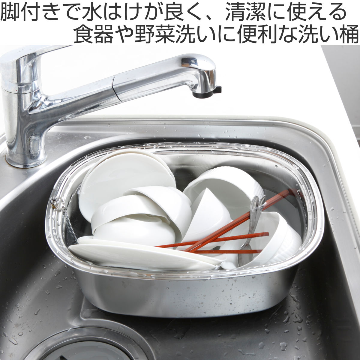 洗い桶 ステンレス製 ゴム脚付き 中栓付き ( ステンレス 日本製 洗いおけ たらい 野菜洗い 食器洗い 桶 つけ置き 脚付き 排水栓付き つけ置き洗い すすぎ シンク周り キッチン用品 キッチン雑貨 水まわり 皿洗い 6.7L )