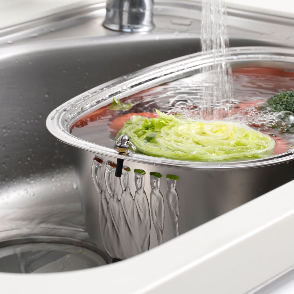 関連キーワード:ステンレス洗い桶 中栓 栓 滑り止め 滑りにくい 水周り オーバーフロー設計 水が溢れない 水があふれない 50度洗い 水をせき止めない 水が流れる洗い桶 水が流れる シンクに合う 清潔 台所用品 シンプル スタイリッシュ お洒落 おしゃれ オシャレ おすすめ オススメ 便利 シンク用洗い桶 シンク用桶 使いやすい