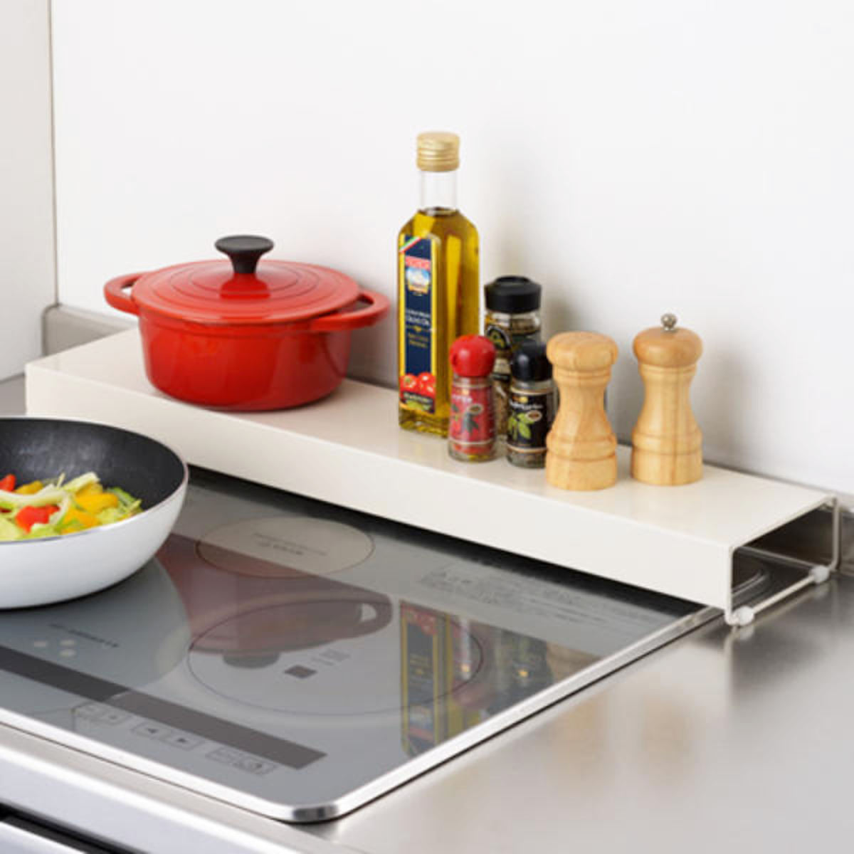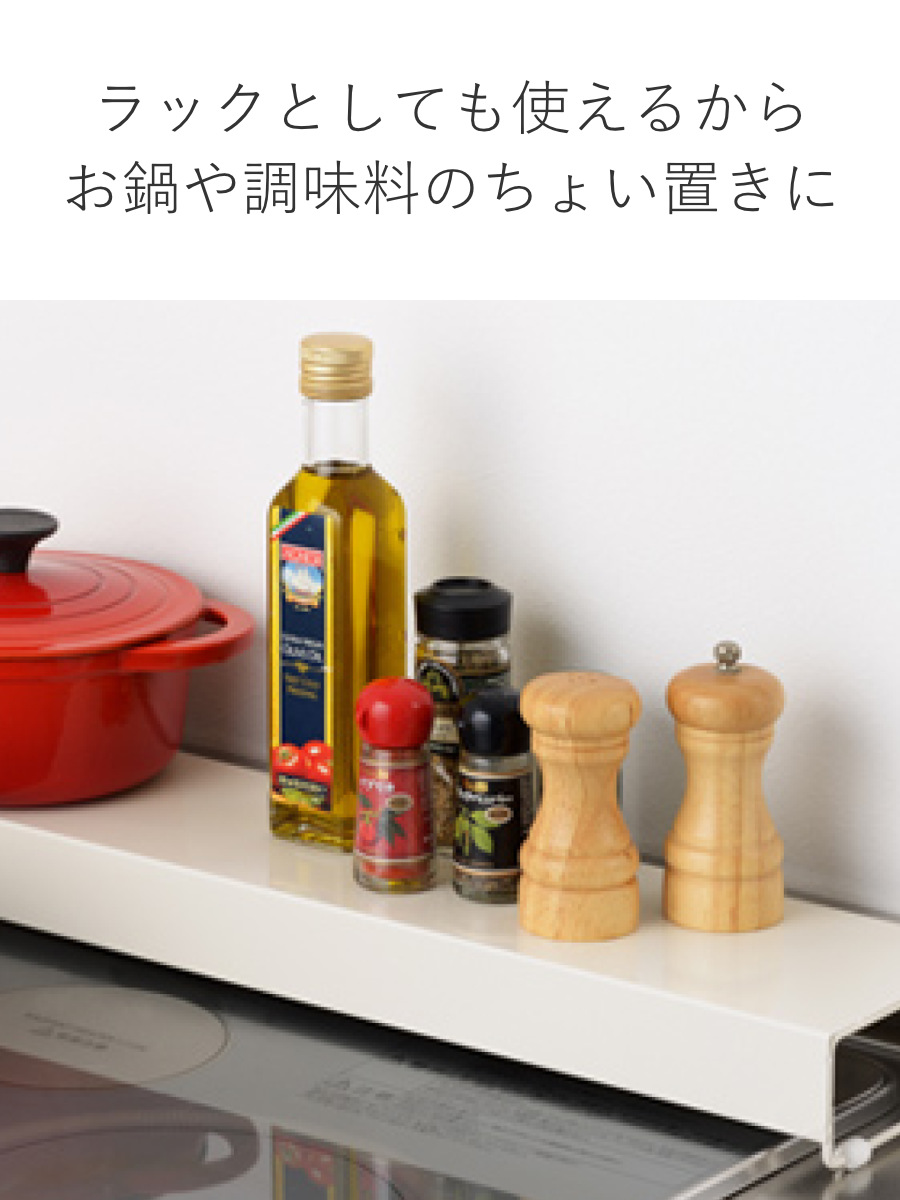 関連キーワード:キッチン用品 60cm スチール製 システムキッチン 台所 排気口用カバー 防汚カバー 油汚れ防止 調味料ラック 鍋置き ホワイト 白 キッチンに馴染む アーネスト 60