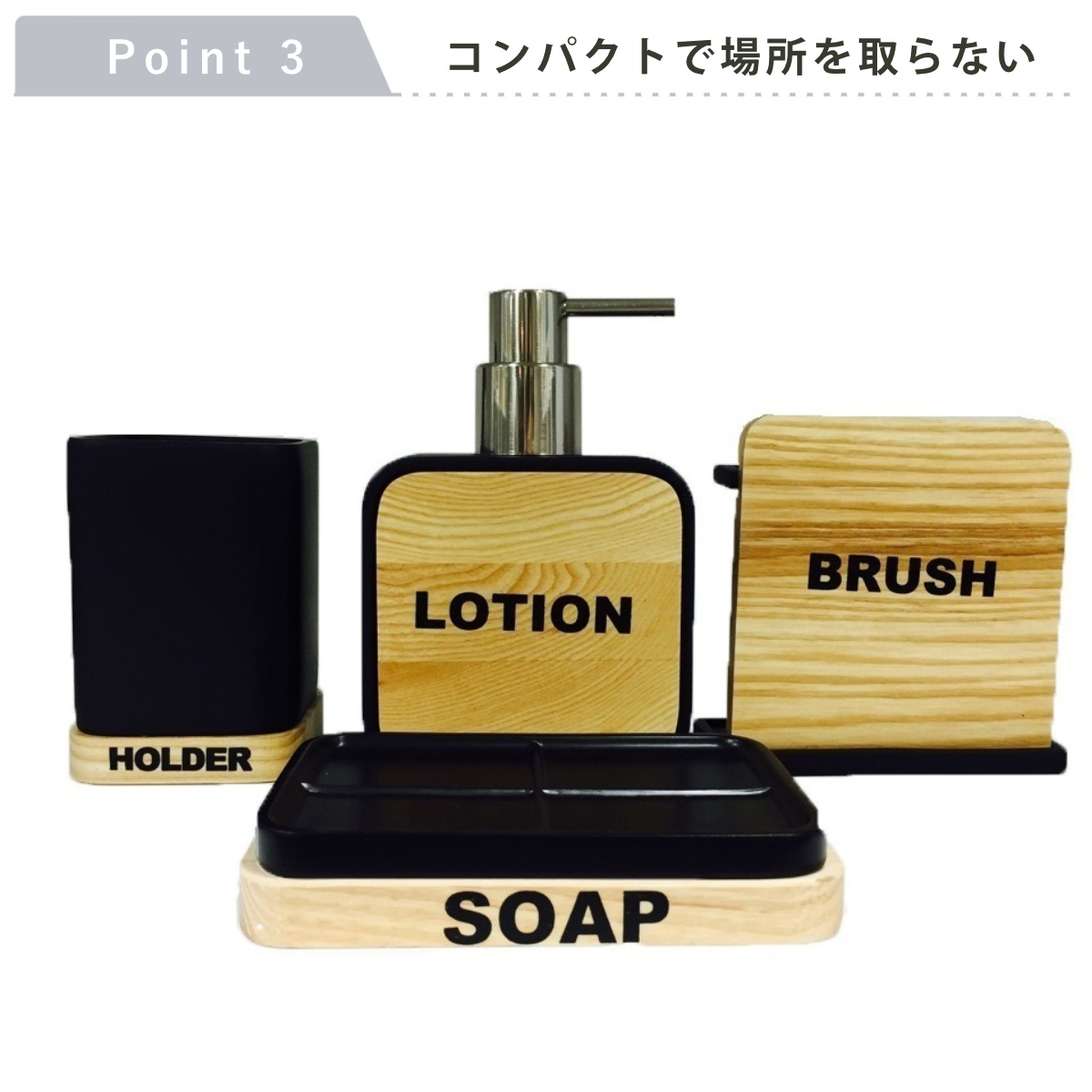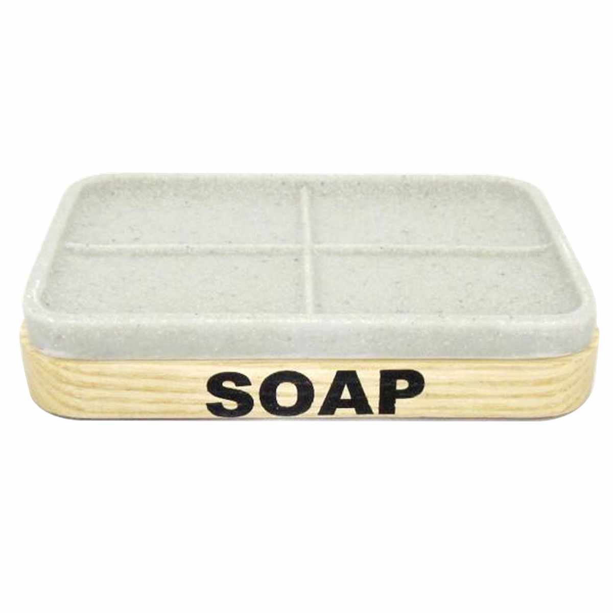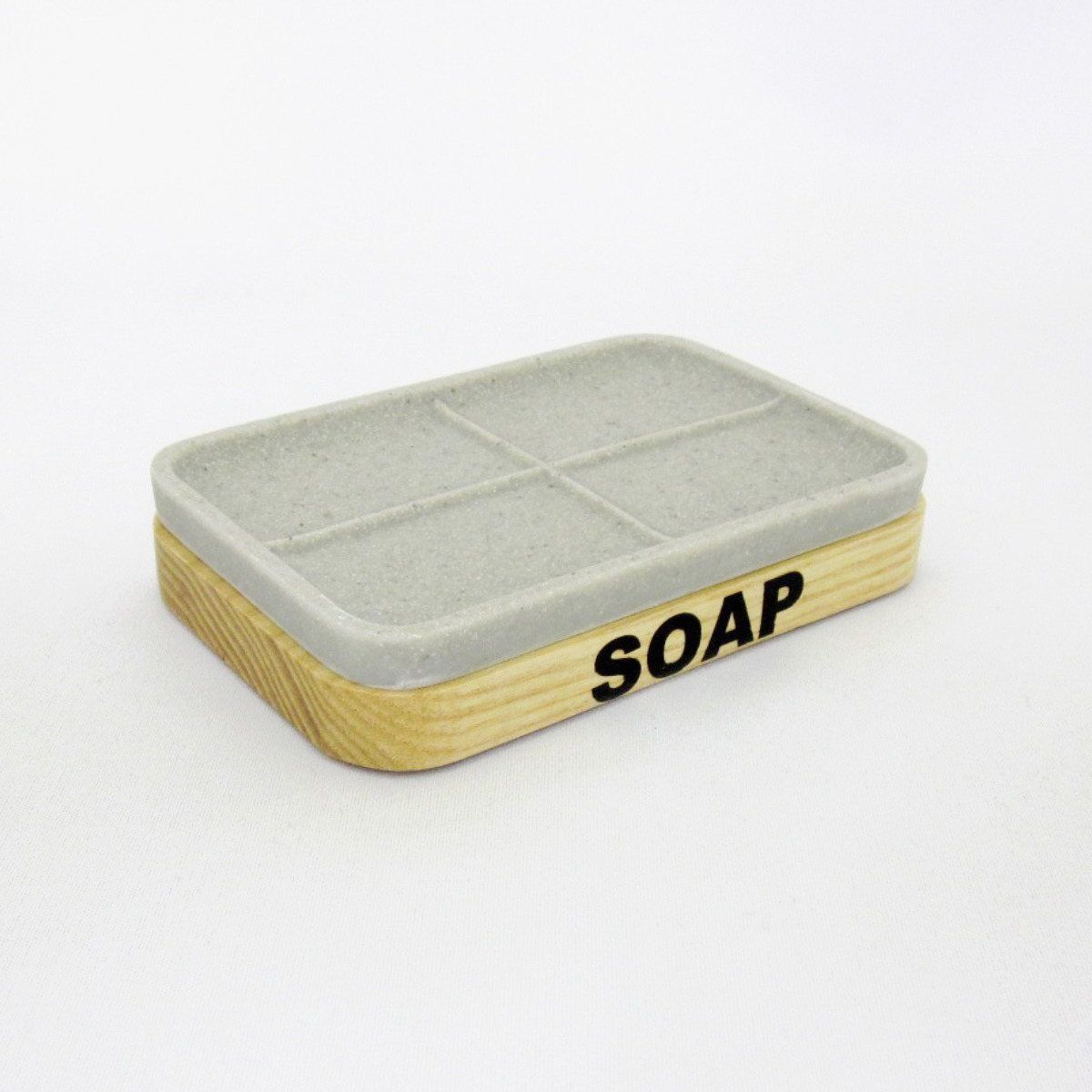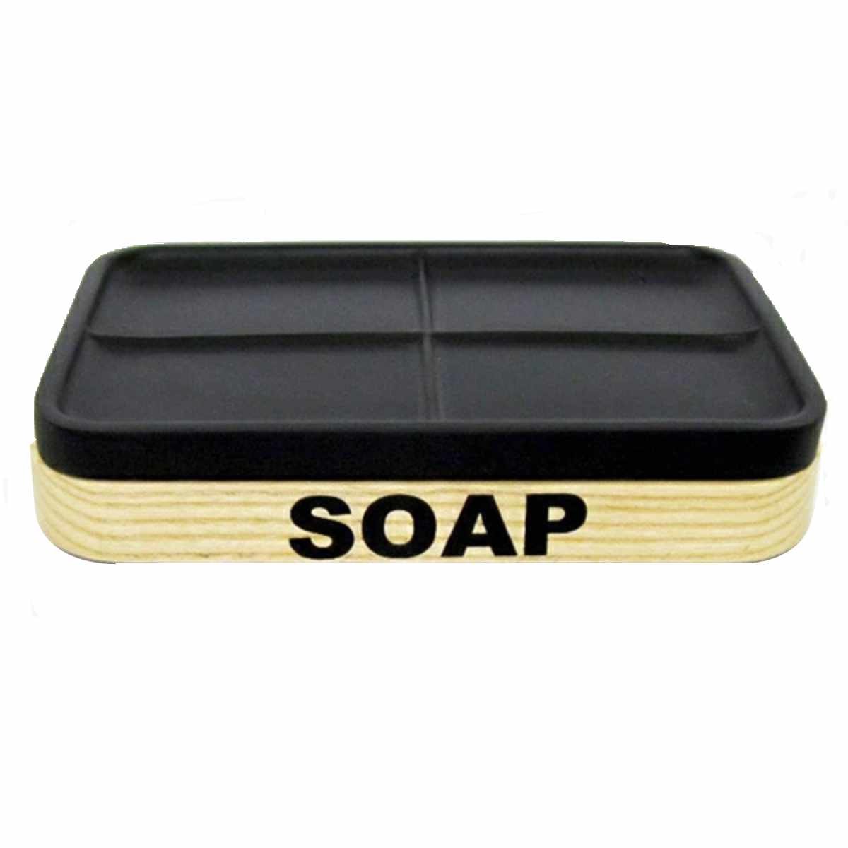 木目に黒字の刻印が目を引く、スタイリッシュなソープディッシュです。シンプルで落ち着いたカラーとフォルムが、洗面台やバスルームに自然に溶け込みます。インテリア性も高く、生活感を抑えた空間づくりにピッタリです。