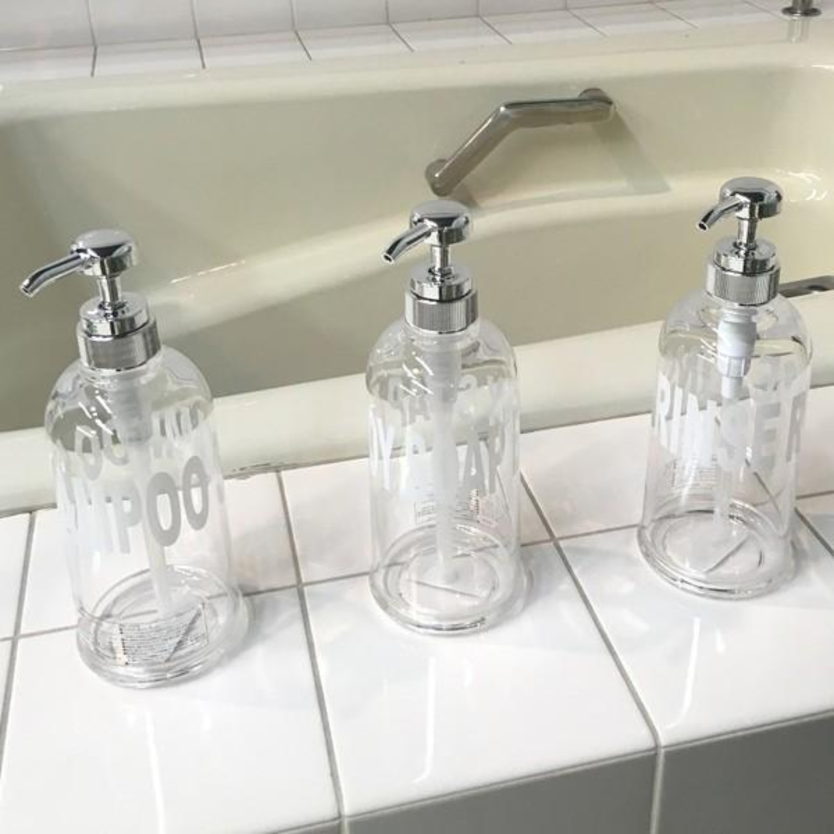 「SHANPOO」と、種類が大きく記載されているので他のボトルとの見分けがしやすくなります。中身が見えるので残りの量も常にチェックでき、使いたい時に中身がもうない!という状況を防ぐことができます。