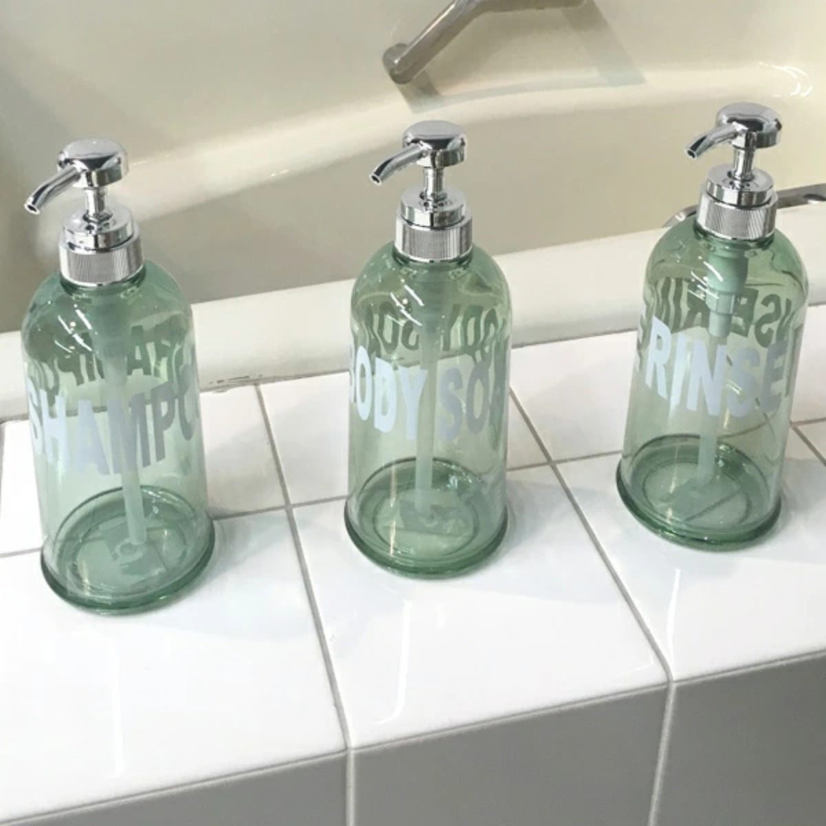 ディスペンサー モビリア 浴室用詰め替えボトル シャンプー用 クリア ( 詰め替えボトル ソープボトル 詰め替え つめかえ プラスチック製 おしゃれ バス用品 ボディソープ ハンドソープ ポンプボトル シャンプー ボトル ) 【グリーン】