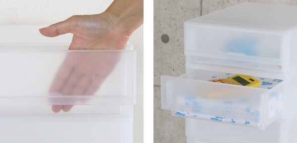 ●やさしいくもりガラスのような色彩の前面部で、中身が見えすぎません。