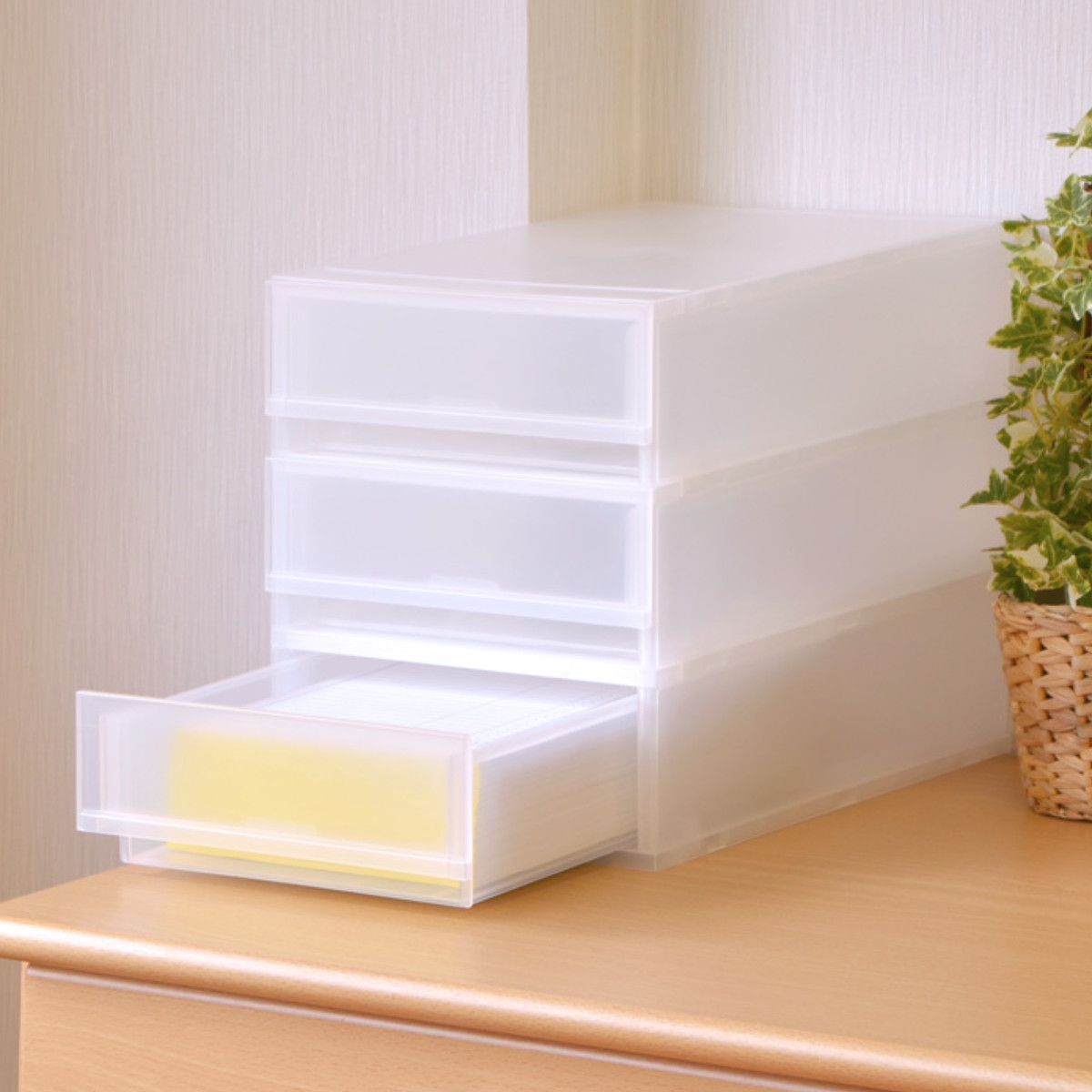 レターケース A4 幅27.2×奥行35.6×高さ32.9cm 3段 収納ケース 引き出し ( 収納ボックス プラスト A4サイズ 書類ケース 収納 プラスチック 卓上収納 日本製 レターラック 書類 スタッキング 小物 小物入れ 小物収納 文房具 )