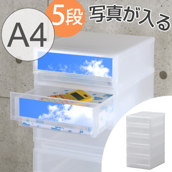 レターケース A4 幅28×奥行36×高さ54cm 5段 収納ケース 写真が入る前面パネルタイプ ( A4サイズ 引き出し 書類ケース 書類 収納 プラスチック クリアファイル 収納ボックス デスク下 デスク下収納 完成品 日本製 )