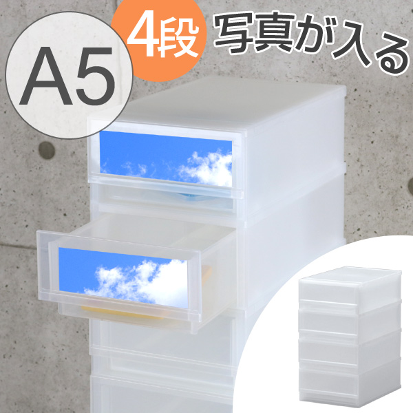 レターケース A5 幅21×奥行36×高さ44cm 4段 収納ケース 写真が入る前面パネルタイプ ( A5サイズ 引き出し はがき ボックス 収納 プラスチック 書類ケース 書類 収納ボックス デスク下 デスク下収納 完成品 日本製 )