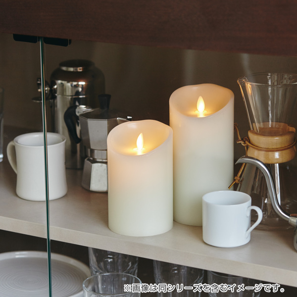 キャンドル 直径7.8×12.3cm ルミナラピラー LED ( ledキャンドルライト 間接照明 キャンドルライト インテリアライト ゆらぎ リアル 癒し リラックス 電池式 安全 おしゃれ リビング 寝室 無香 タイマー ベッドサイド )