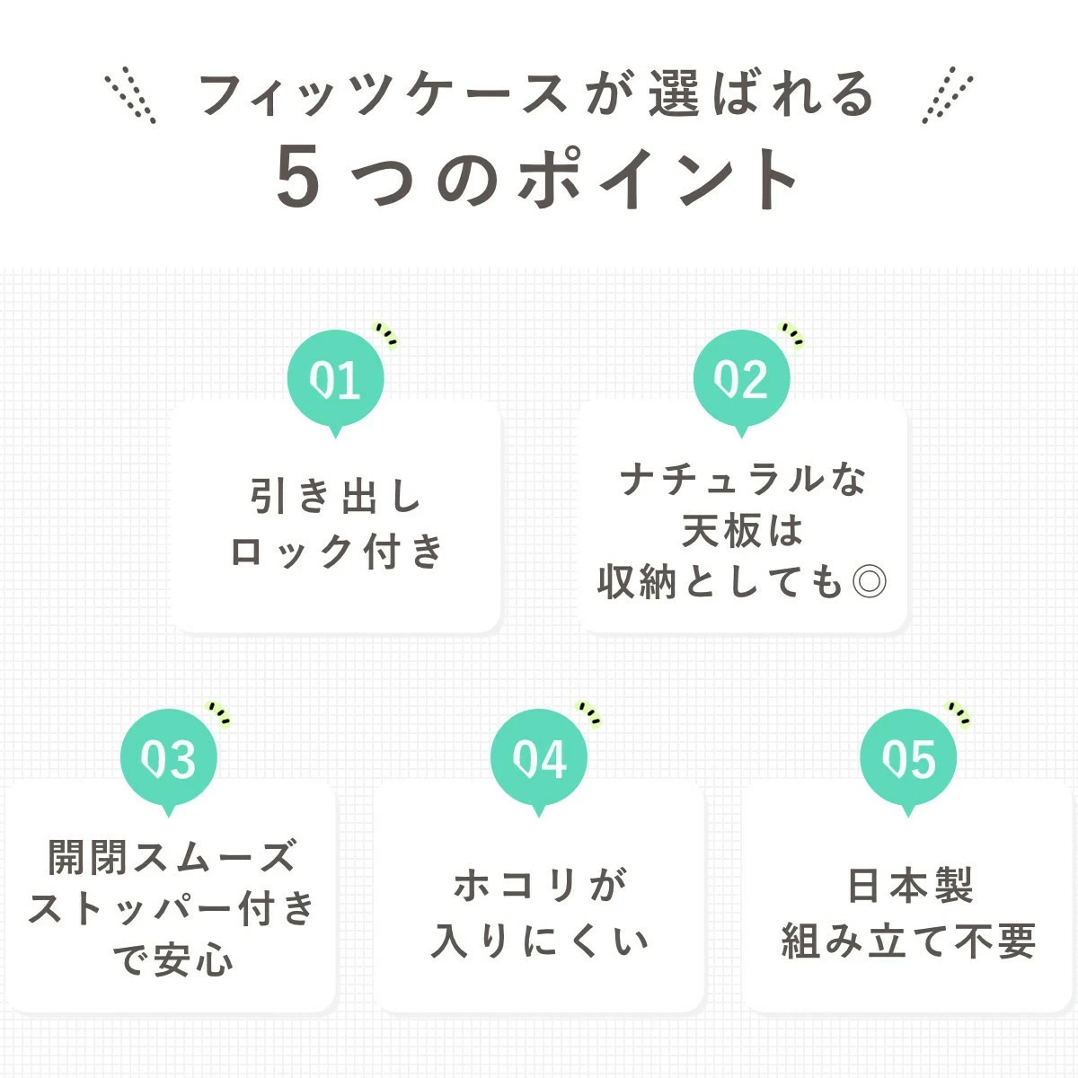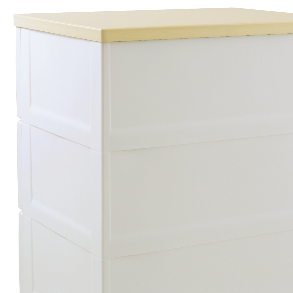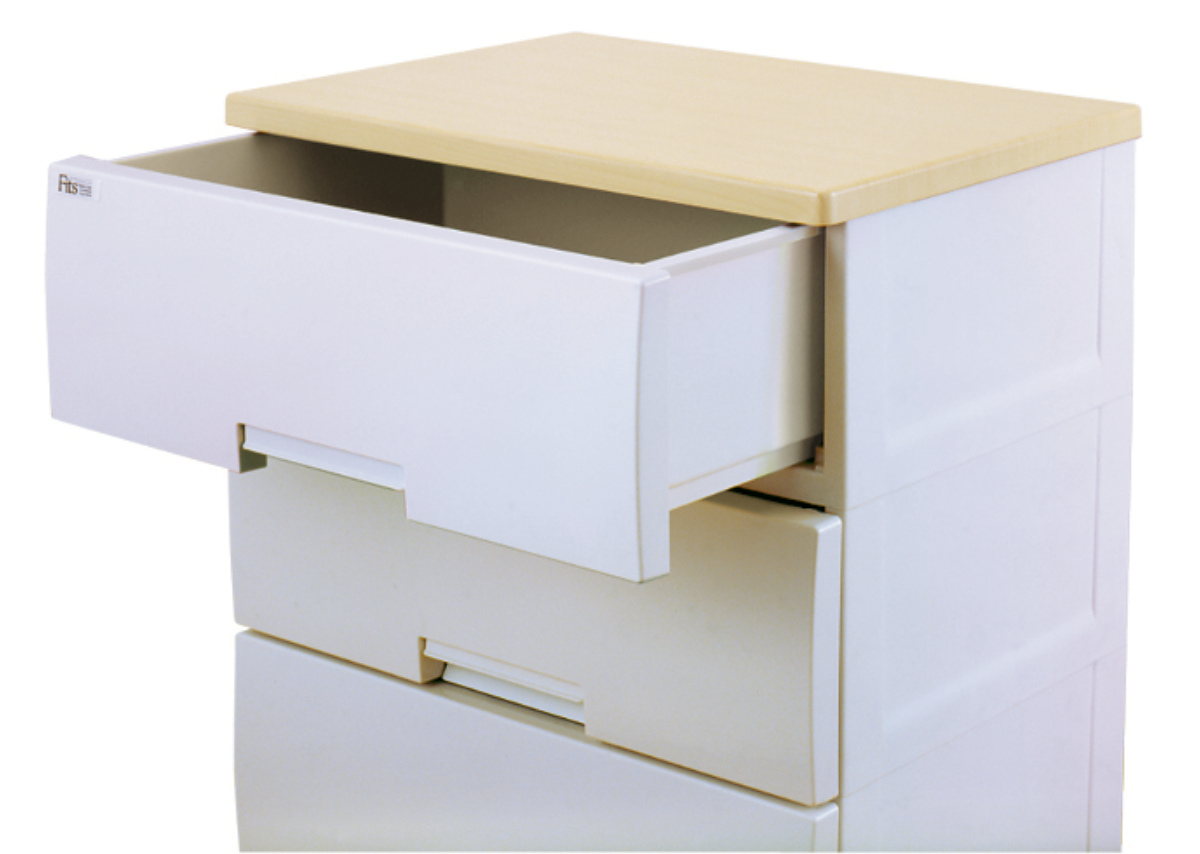 | 材質 | 本体・引出し・ロック、ローラー:ポリプロピレン 脚:ポリプロピレン、ポリエチレン(すべり止め) 前パネル:スチロール樹脂 天板:MDF(ハニカム構造メラニン化粧版) |