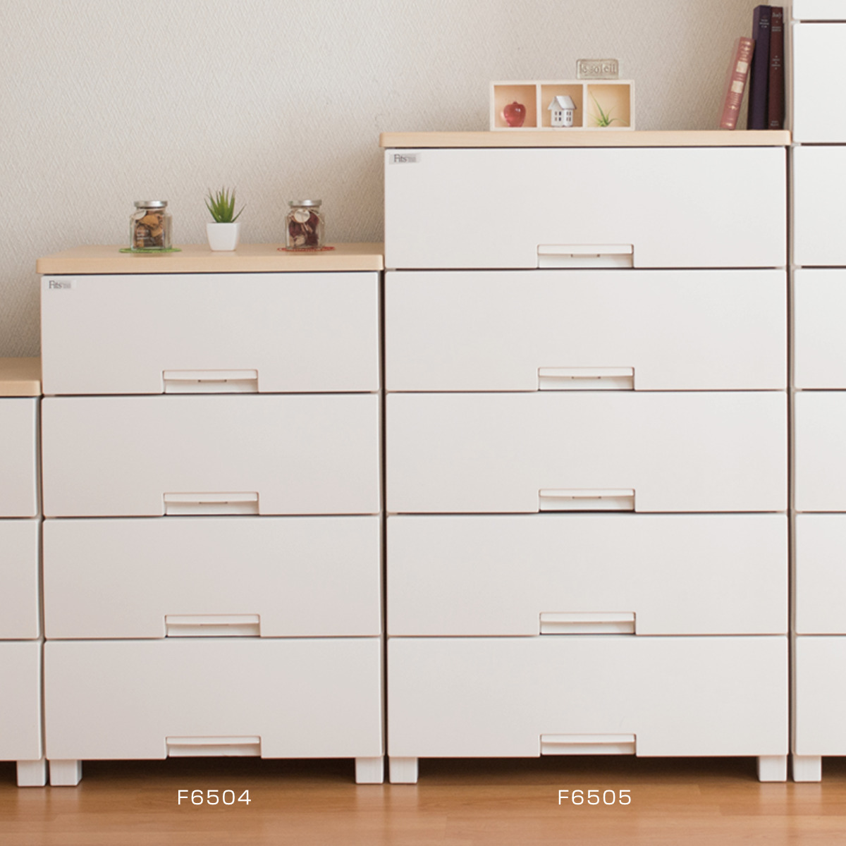 チェスト フィッツプラス 4段 幅65×奥行41×高さ85cm F6504 ( タンス 引き出し 収納 衣類収納 日本製 完成品 フィッツ Fits プラスチック 引き出しロック 衣装ケース リビング収納 洋タンス 収納ケース 木製天板 ストッパー付き )