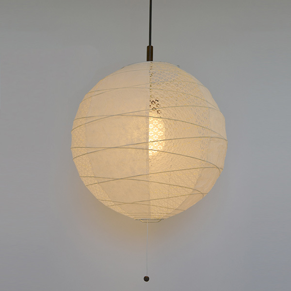 透かし和紙と揉みの入った上品な和紙をつかった提灯型ペンダントライトです。透き和紙の小梅模様と、揉みの入ったクシャッとした上品な白の揉み紙が、光をつけると浮き上がります。和モダンな雰囲気で、ご家庭だけでなく店舗照明にもオススメです。また、提灯ひごをクロスさせて巻いているのが、この商品の特徴です。