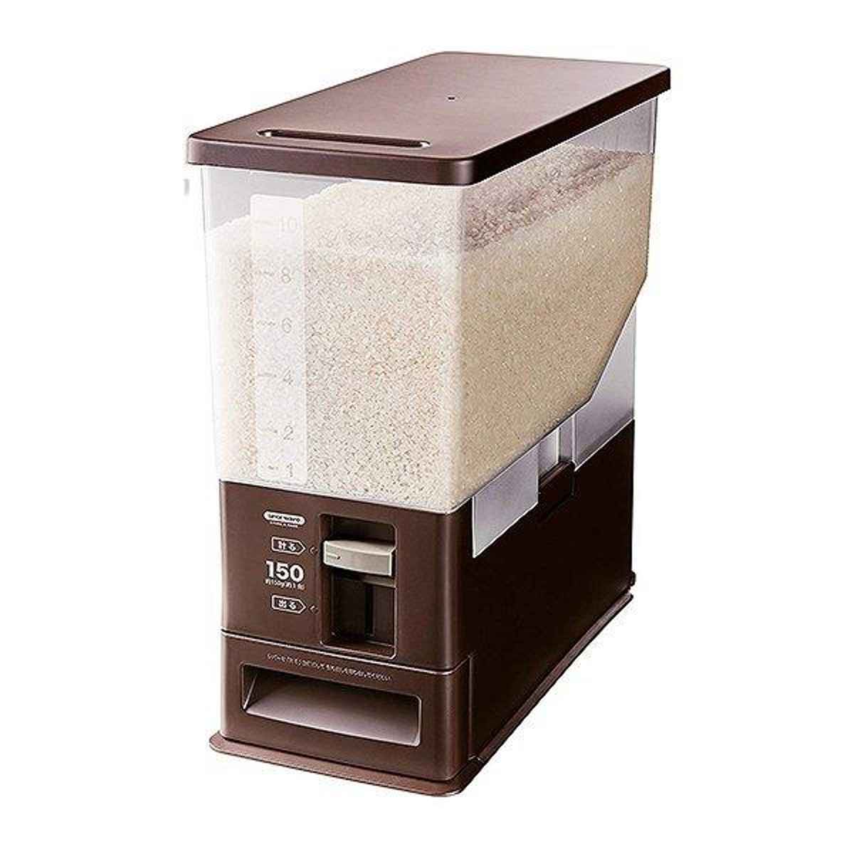 米びつ 計量米びつ 10kg用 12kg ( 1合計量 10kg スリム 組立式 無洗米兼用 ライスストッカー 米櫃 ライスボックス おすすめ こめびつ シンク下 洗える 残量見える お米 コメ 収納 保存容器 レバー 計量 1合 ) 【ブラウン】