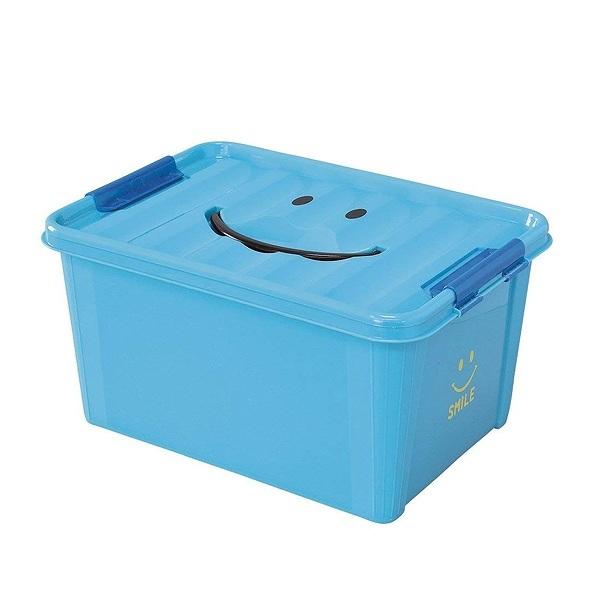 おもちゃ箱 M 幅40×奥行28×高さ21cm 収納ボックス おもちゃ 収納 スマイル ( 収納ケース おもちゃ入れ おもちゃ収納 ボックス ケース 子供 キッズ 持ち手付き フタ付き 持ち手 フタ 付き 子供部屋 積み重ね スタッキング ) 【 ブルー 】