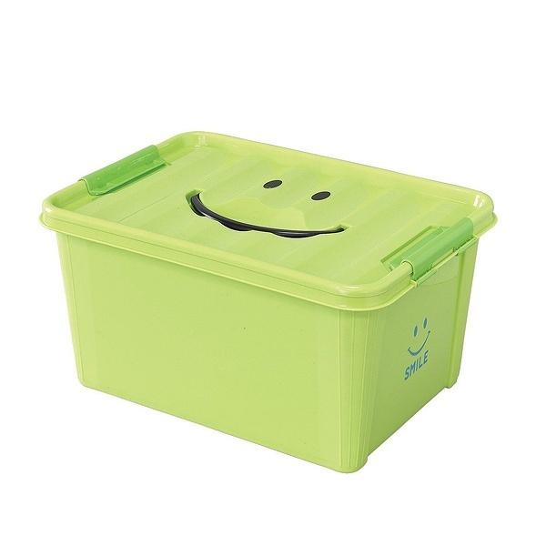 おもちゃ箱 M 幅40×奥行28×高さ21cm 収納ボックス おもちゃ 収納 スマイル ( 収納ケース おもちゃ入れ おもちゃ収納 ボックス ケース 子供 キッズ 持ち手付き フタ付き 持ち手 フタ 付き 子供部屋 積み重ね スタッキング ) 【 グリーン 】