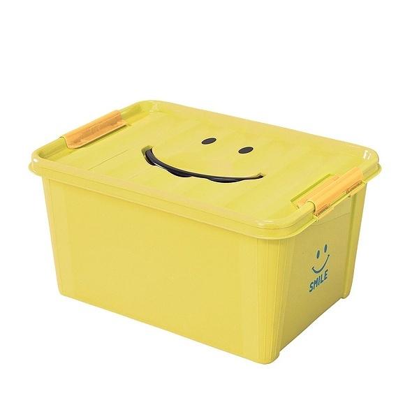 おもちゃ箱 M 幅40×奥行28×高さ21cm 収納ボックス おもちゃ 収納 スマイル ( 収納ケース おもちゃ入れ おもちゃ収納 ボックス ケース 子供 キッズ 持ち手付き フタ付き 持ち手 フタ 付き 子供部屋 積み重ね スタッキング ) 【 イエロー 】
